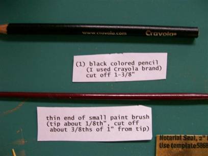 So, I first found a Crayola black colored pencil...said right diameter to me, so I cut a piece off about1-3/8" and sanded the cut end flat.