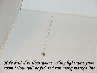 Look at the room where you are installing the light. You should see the lines you drew in Step 1 where you plan to run the wires. Take the light and "dry fit" the light along the lines to make sure it is acceptable. Now is the time to see if you have to lengthen the wire coming from the light or if it is long enough to reach the tapewire. If you have to lengthen the wire from the light, follow our tutorial at the bottom of this page on Splicing Wires Together.