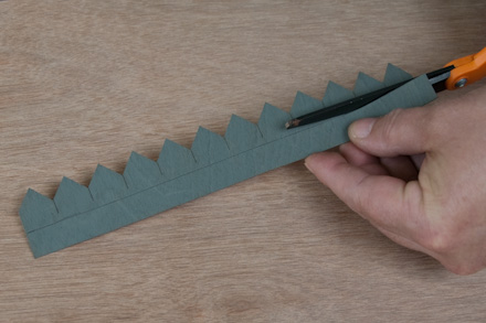Starting at the left hand side, line up the points on the second row so that they just cover the vertical cuts in the first row. Be sure to overlap the first row a little. Trim both sides with your utility knife.