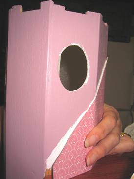 I've let the tower wallpaper dry overnight. I want to make sure it's good and dry because I don't want it to start moving when I begin cutting. Now it's time to cut out the windows and trim the excess wallpaper off.