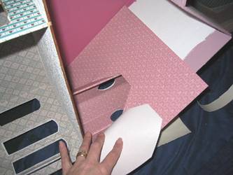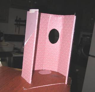 Once I have the paper laid against the back wall, I again rub the paper down against the tower, just running my finger and fingernail along the curves, which makes creases in the paper--and that's how I know where to cut the paper.