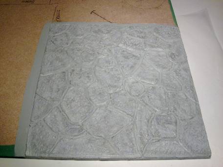 We’ll begin with the patio. Roll out a piece of paperclay large enough to cover your patio area. To avoid cracking as the clay dries, try to roll it to the thickness of pie crust and be sure the thickness is consistent over the entire piece.