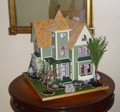 Here’s an example: when I electrify my houses, I hide the junction splice under the floor. When it came time to landscape the Fairfield, I needed to run a cord through a hole drilled in the base and plug this into the junction splice that was secured inside of the foundation. With its trim and shingles in place the house was too delicate to safely turn on its side. I ended up lifting the house above my head in order to see the junction splice and plug in the cord. This would have been much harder to do with a larger house, but the approximately 14" x 14" Fairfield was simple to lift and move around.