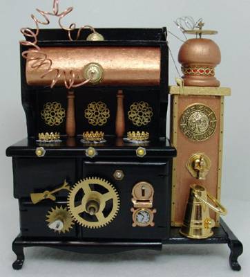 There are many different definitions of steampunk depending on whether the person defining it is into science fiction, Victoriana, or even craves a bit of punk overtones. Realistically however, steampunk is a sub genre that falls into a category miniaturists love---the Victorian era. Loosely defined, it’s an interpretation of how the Victorians might have perceived the future while being swept up into the industrialization of their society.