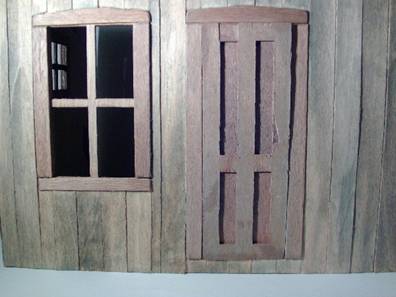 To get a rough and weathered look, when separating the siding strips, don’t use scissors as you normally would. Tear them apart and leave the edges rough and splintered. Glue the siding strips to the exterior, leaving some gaps here and there. You can stagger the lengths of siding strips if desired. Try not to be too uniform with the lengths. In reality, plank siding was usually made of scrap lumber so try to achieve the same effect with your miniature house.